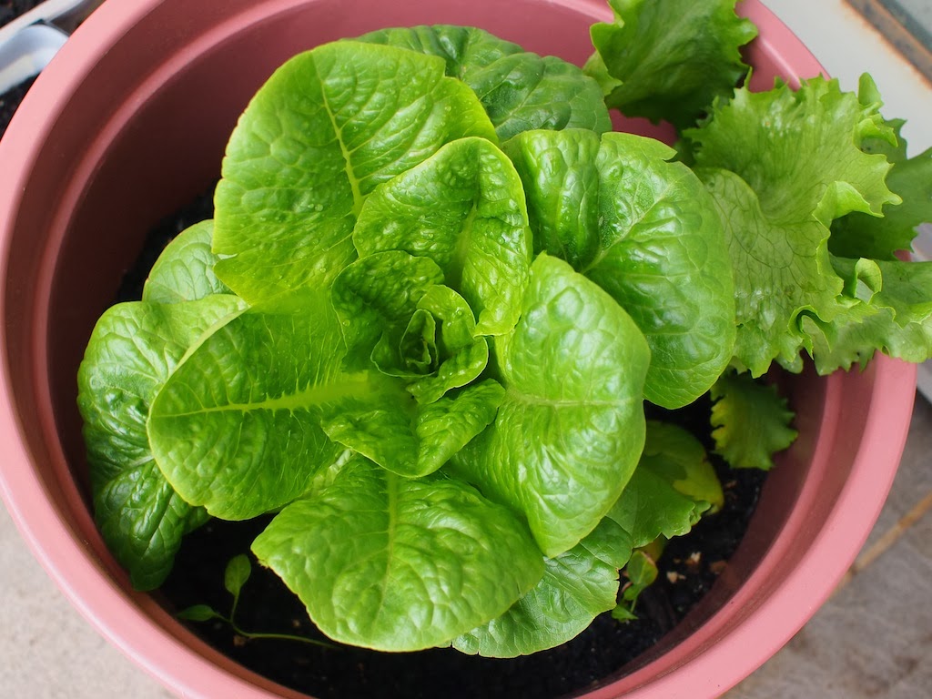 Lettuce is growing again in DIY self watering pot after first harvest.